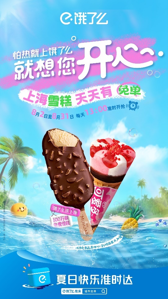 同时,“雪糕自由”也将实现。即日起,饿了么开启“冰品免单”活动,联合和路雪、八喜、伊利、OATLY等品牌送出总计100万份雪糕。据悉,每天下午1点,用户搜索“城市免单”进入城市活动会场或直接进入带有“免单”活动标签的店铺内,加购1件免单活动商品并满足订单起送价后,即可享受冰品免单。