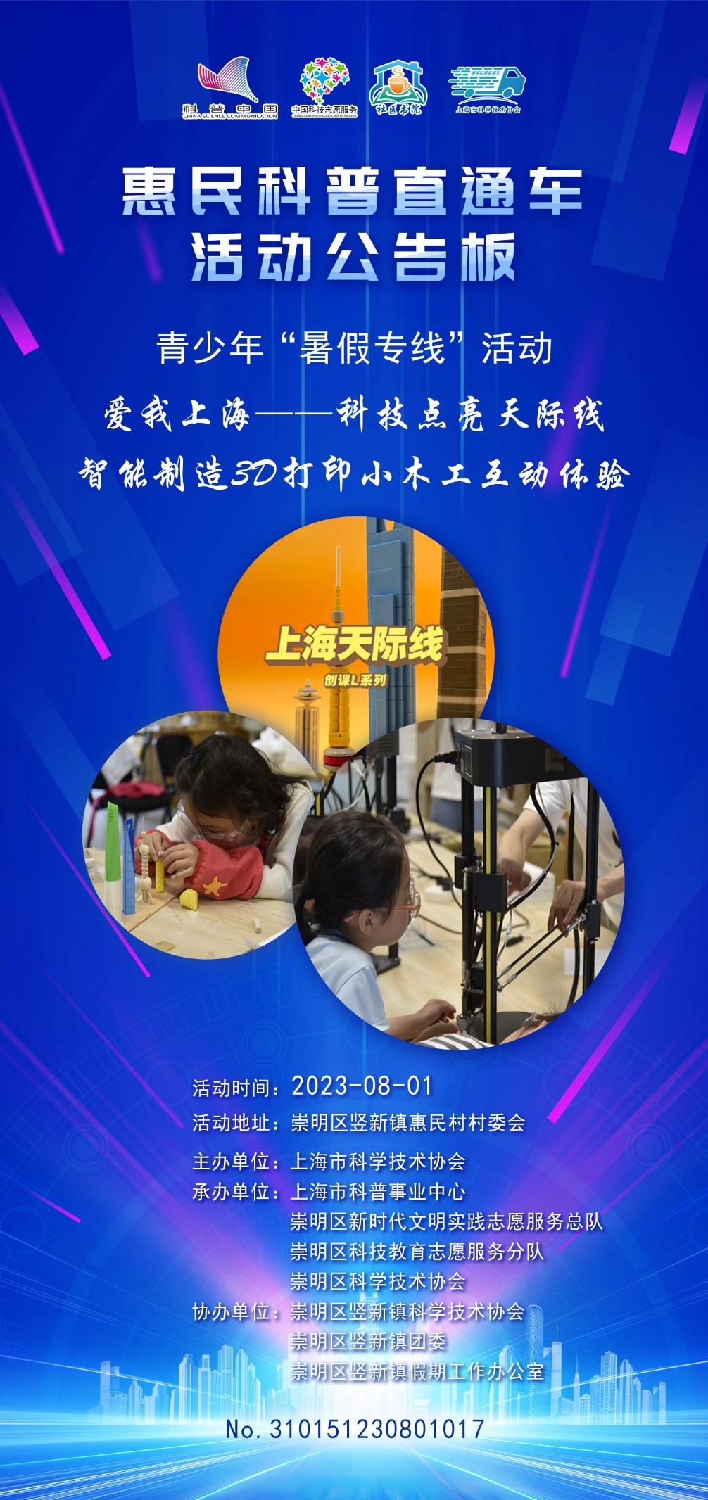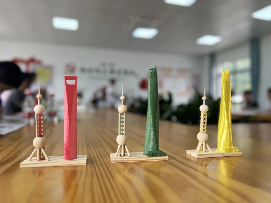 “暑假专线”为竖新镇的小朋友们带来的是“爱我上海·科技点亮天际线”——智能制造3D打印小木工互动体验活动。本堂直通车课程通过介绍在线虚拟建模平台的基本操作、3D打印的基础入门和切片处理等相关科技知识,借助多媒体课件了解“上海环球金融中心”3D模型的打印过程,并进一步利用智能制造工具以及结构件,结合创课小木工教具手工制作“东方明珠”模型,搭建出桌面上靓丽的上海“天际线”。