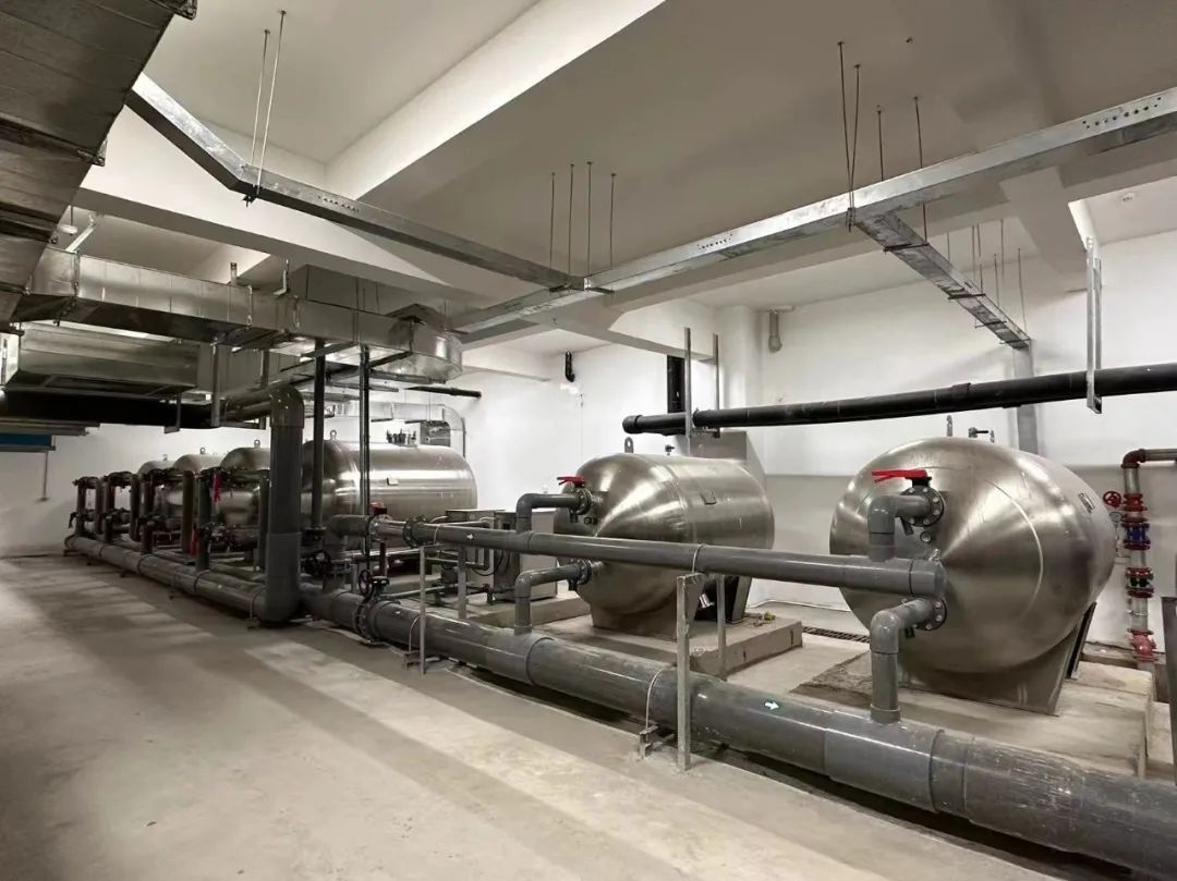 上外云间中学后勤服务中心主任王荣斌介绍,游泳馆建成于2022年,配有先进的水处理、加温、地暖、空气恒温系统。泳池区域采用泳池专用“三集一体”热泵除湿机,集除湿、空调、池水加热于一体,配置了一台风冷热泵作为辅助冷热源。同时还配置了2台空气源热泵热水机组,为泳池地面辐射采暖系统提供热源。尤其值得一提的是,泳池配备的独立池水循环净化给水系统,采用逆流式循环方式,经循环过滤、臭氧消毒、紫外线消毒、加热和水质平衡等多个流程,达到净水清洁与节水环保双重效果。