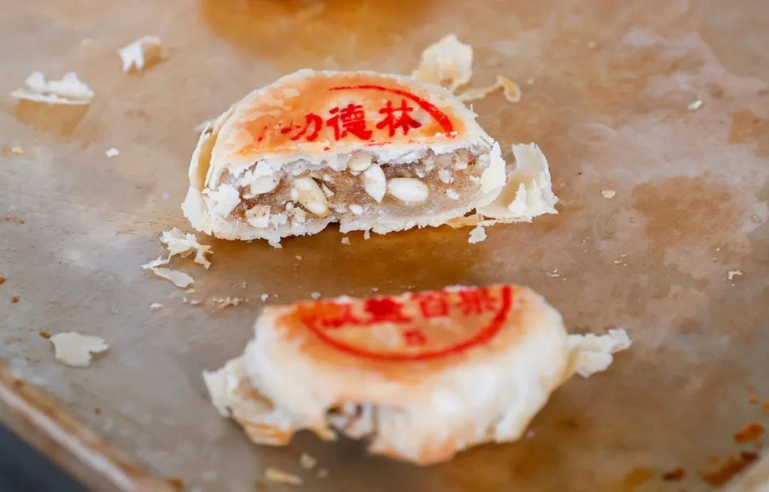 创立于1922年的功德林是沪上著名的老字号品牌,专做净素菜肴、净素食品,其素食制作技艺被列为国家级非物质文化遗产。其中,功德林月饼是苏式月饼的代表,从拣果到和面、起酥、包制、烘焙,均沿袭传统工艺手工制作,在用料上也十分考究,馅料中的各类果仁都来自国内著名原产地。