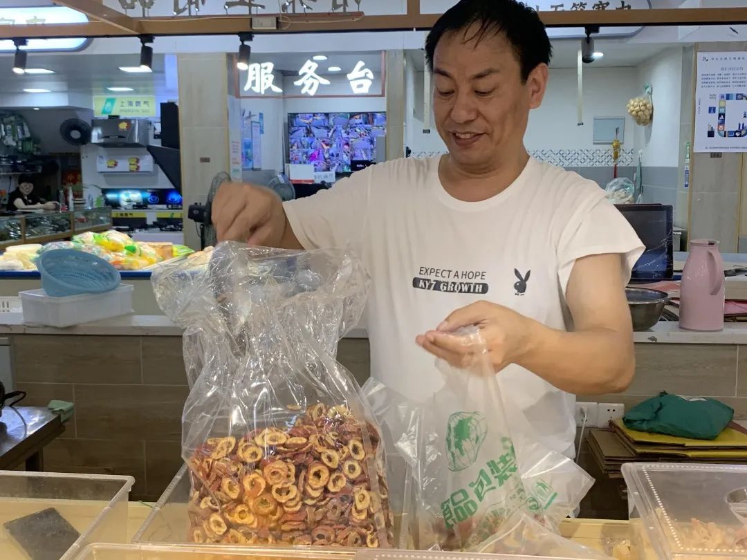 除时蔬外,记者发现居民们还会购买核桃、红枣等干货坚果。“核桃芝麻粉具有养发明目、润肠通便、补肾益精等功效,我一年四季都吃的!”王阿姨告诉记者,她每次买一斤核桃和芝麻,让店家打磨成粉,回家可以干吃,也可以用来做汤圆、花卷、芝麻糊,“喝粥的时候洒上一把也是非常好吃的。”