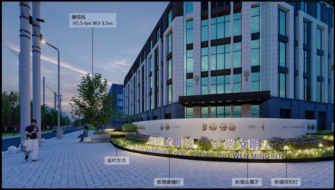值得一提的是,为提升道路两侧绿化品质,此次“见缝插绿”增加绿化小品,在同乐路周家浜路路口增加洞泾特色标识与城市家具,梳理不当的交通流线,营造形象性佳、安全度高的街道路口环境。