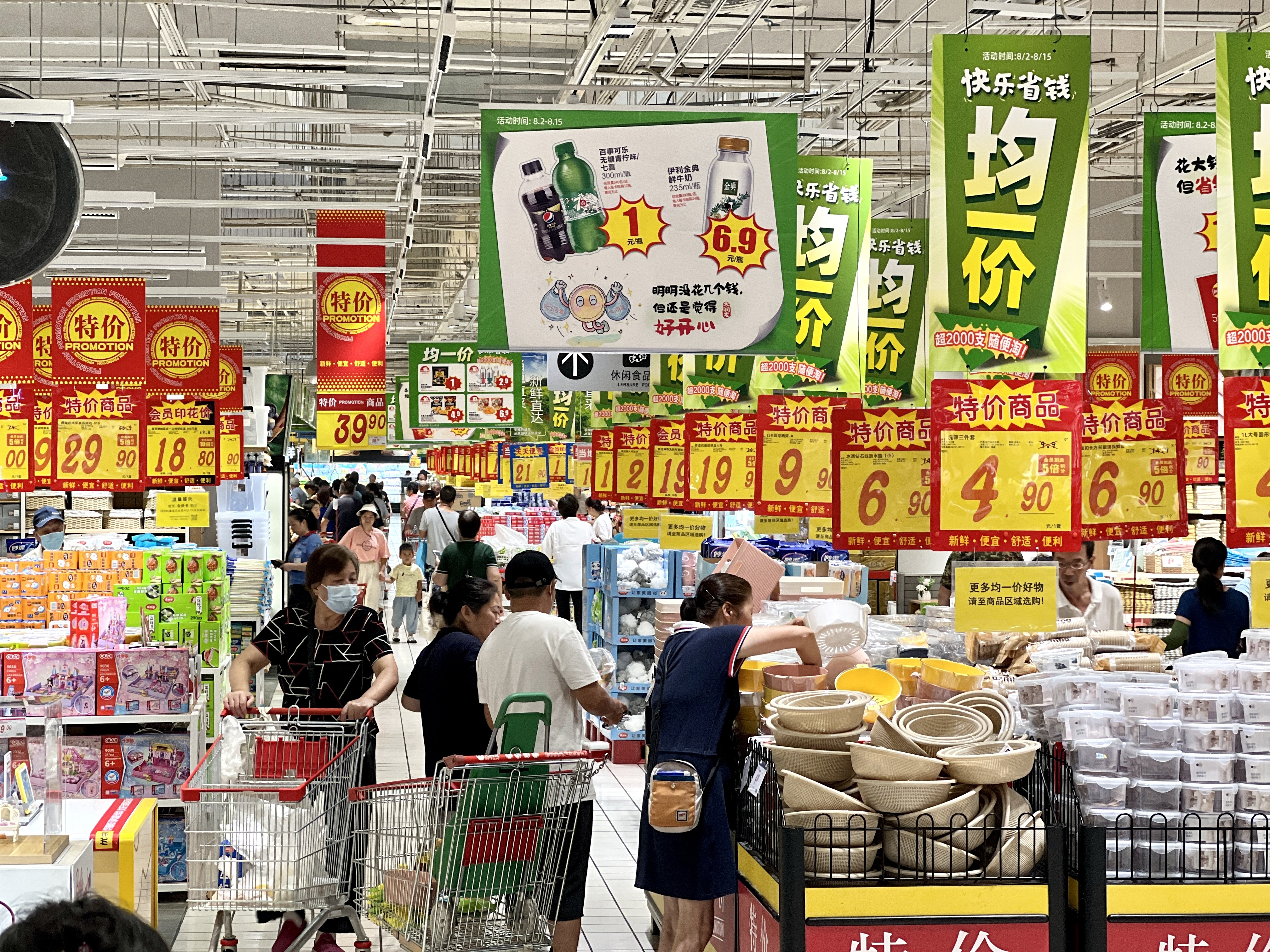 记者了解到,本次“均一价”活动将持续至8月15日。在此期间,大润发将包含零食、日用品、米面粮油等品类在内的超两千款商品统一价格,最低仅需1元。