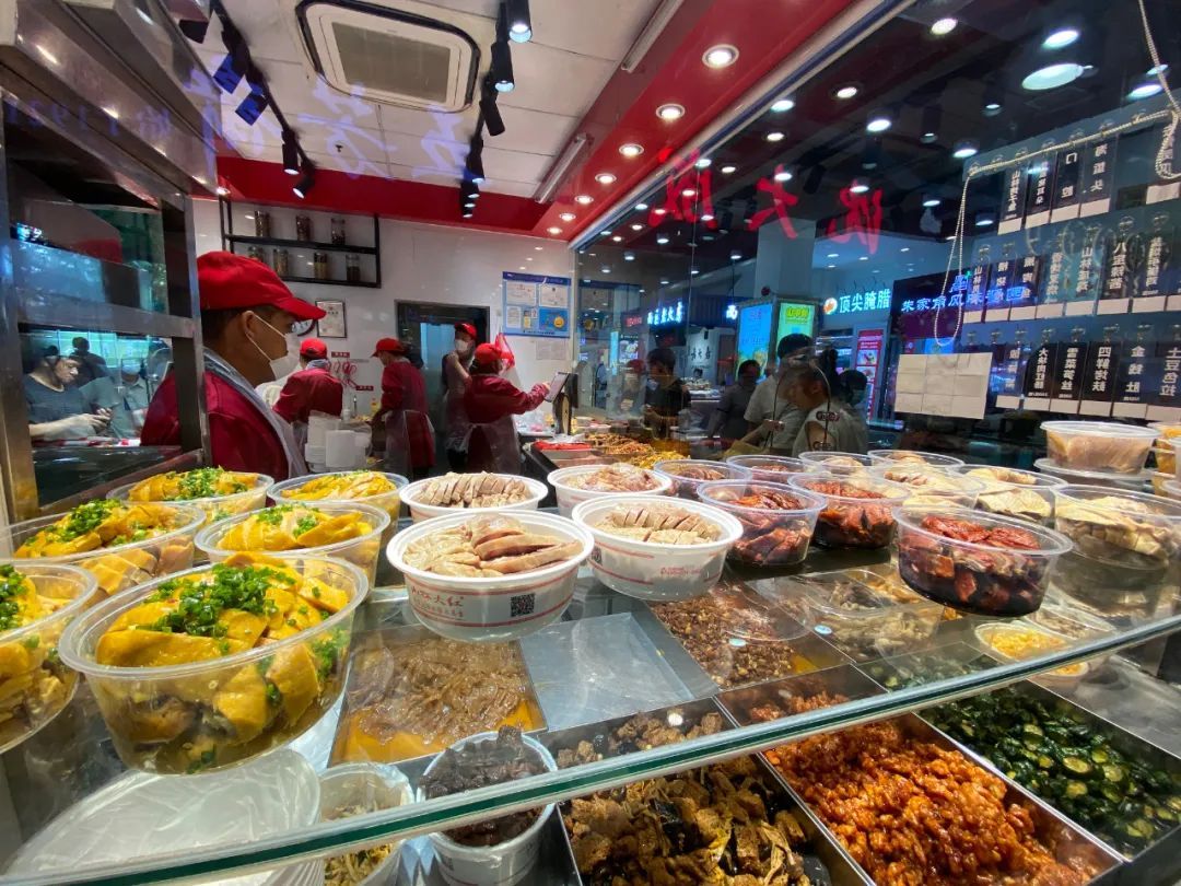 在店铺的玻璃窗内,可以看到诸如酱卤鸭腿、鸭胗、红肠等美食。这些都是在夏季中必须品尝的美味!
