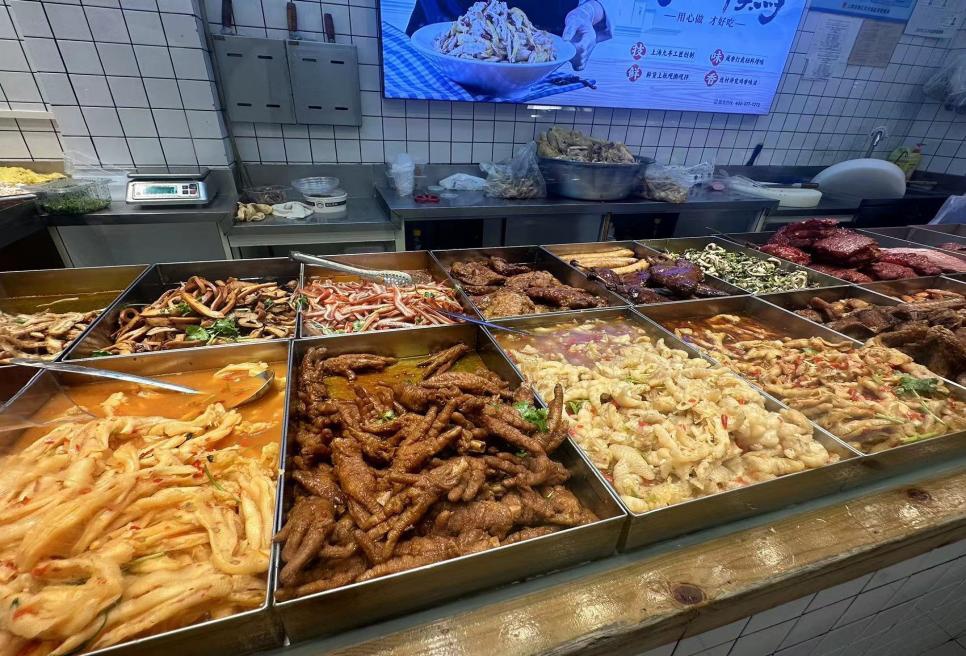 菜单上可见凉拌菜、手撕鸡、酱牛肉等多种凉卤美食,店内环境卫生整洁,食品色香味俱全,看起来美味诱人。