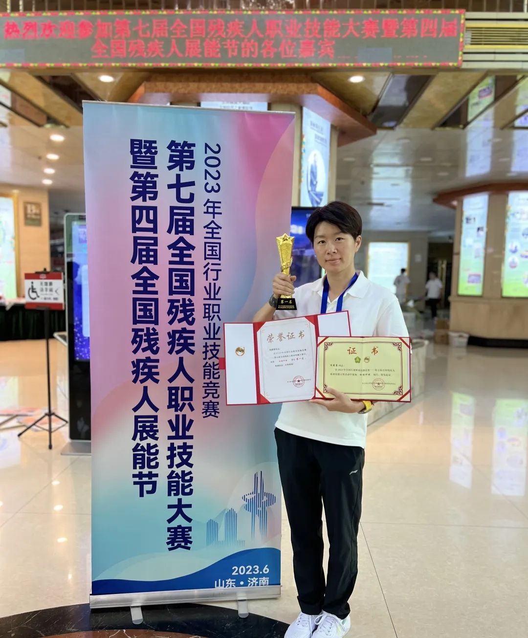 这次参加第七届全国残疾人职业技能大赛,由于现场需要限时做出共计10杯且风味不同的咖啡,陈露蕾一度倍感压力。练习的时候,没有听力障碍的选手可以依靠振鸣声判断奶泡打发的程度,而听不到声音的陈露蕾只能通过判断蒸汽棒的长度,利用反复练习的经验去感知。最终,她通过辛勤的汗水收获了成功的喜悦,也实现了自己的梦想。
