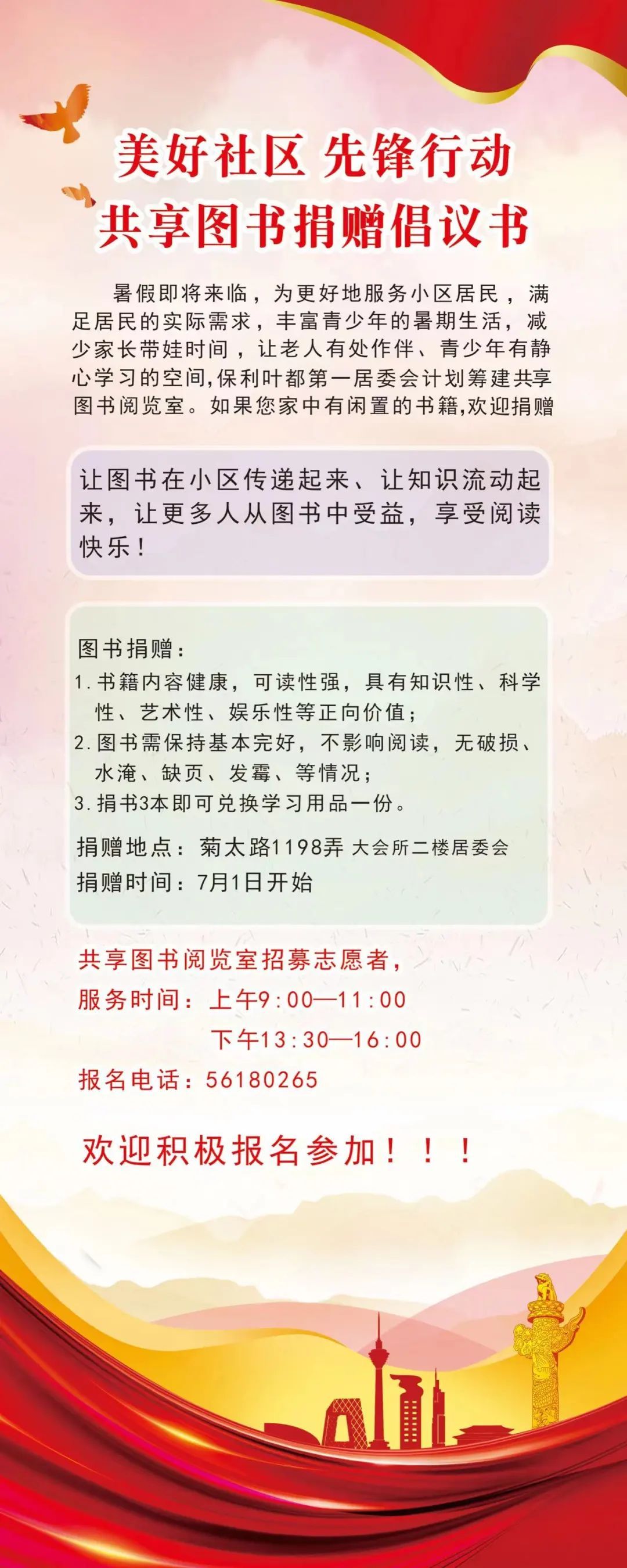 你喜不喜欢这样一个地方,可以在这里找到兴趣和伙伴,大家一起交流互动。这不,就有这样一个居委会在6月初开始谋划即将来临的暑期生活,满足居民的实际需求,丰富青少年的暑假生活,减轻家长带娃压力,让老人有处作伴、青少年有地学习,这就是全新生活共享方式——“Book思议”书社。为了让这个共享图书馆顺利开张,宝山区顾村镇保利叶都第一居委会开展了一场如火如荼的捐书活动,为共享图书馆的顺利运营打下了基础。