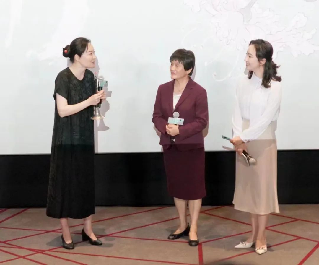 画家万芾(中)与唢呐演奏家朱颖(左)。朱颖在现场演绎了《百鸟朝凤》。同时,现场还将展出万芾在紫砂、扇面、服饰等领域的衍生跨界之作。据了解,本期艺术展即日起至9月22日在上海国际传媒港CMG融媒影城举办。影城内常设的“海派艺术家之家”展陈空间,将持续为公众打造集创作、展陈、互动和休闲于一体的沙龙式文化家园。