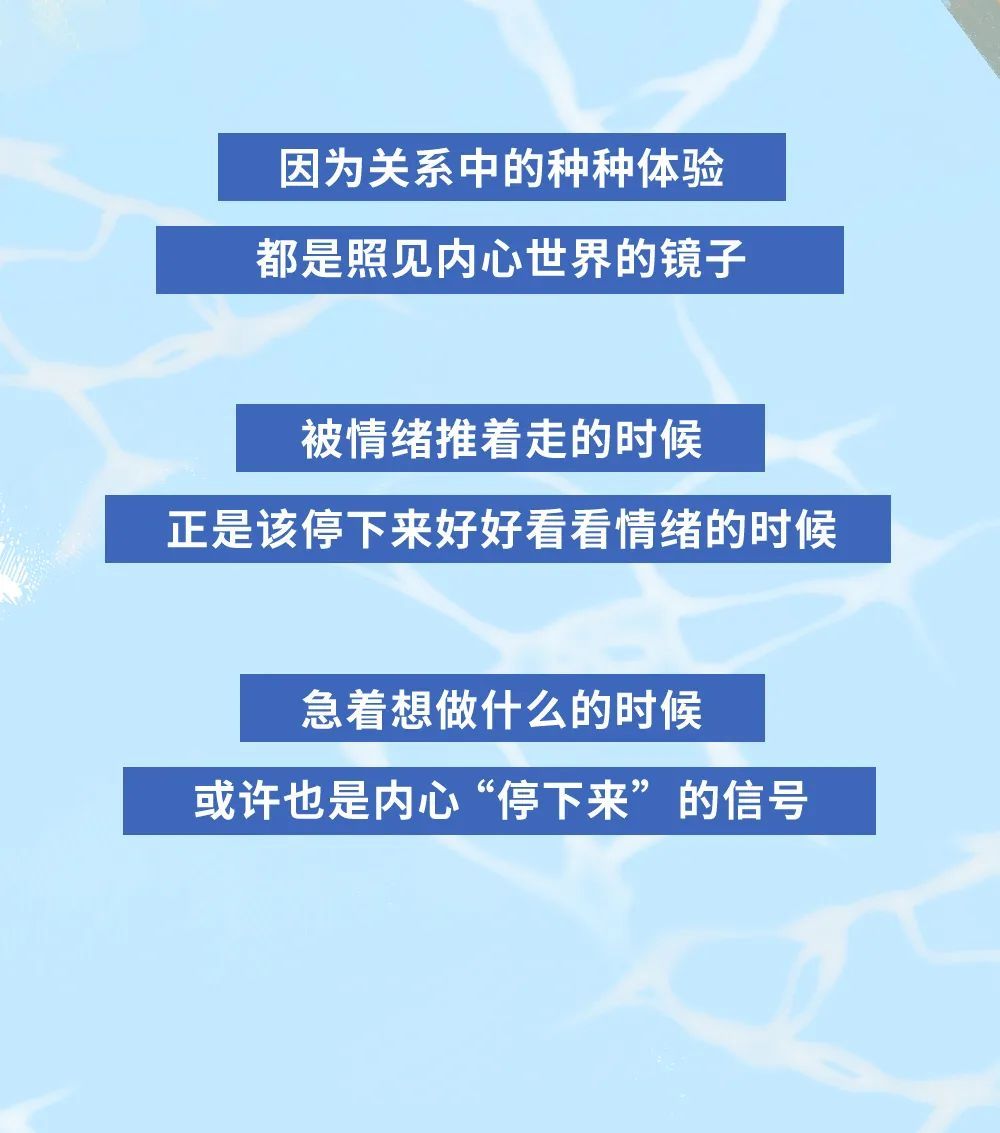《亲密关系》中有一句话:“通往地狱之路,是用期望铺成的。”这并不意味着我们要在“放弃期待”这件事里下功夫,而是应该试着以一种清醒、觉察的态度,去接收“期待”所折射出的信息。有时候,期待感来得如此强烈,仿佛在关系中被满足之后,我们就再也不会被匮乏所困。真相却是:只有放下这种单方面的期待与满足,一次次地碰撞和捕捉内心真正的匮乏与渴求,以一种“合作”的态度进入关系,才有可能走出“期待与失望”对关系的伤害。更重要的是,在一次次的觉察中,走近内心,滋养我们与内在的关系。希望这样的觉知,能伴随着你时时照见自己。这,才是把关系化为生命礼物的契机。脚 本 / 小 泽
