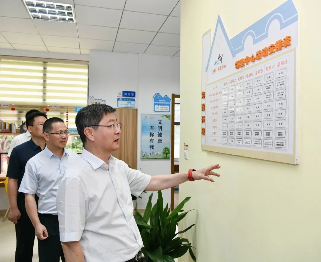 刘健首先来到山阳镇万盛居民区,实地前往老年活动室、文娱活动室等察看活动空间使用情况,详细调研居民区挂牌现状。前期,万盛居民区共排摸各部门挂牌23块,现根据政策文件依据保留12块挂牌,对无政策文件规定的挂牌已完成摘牌。刘健认真询问小区物业负责人,了解现阶段最突出的民生问题。刘健指出,“减牌子”重在优服务,牌子减少的同时,要进一步提升服务效能,以百姓需求为导向,合理设置各类活动空间,切实把时间和精力用在为百姓解决实际困难问题上;要紧跟数字时代的发展步伐,利用好先进的技术手段,进一步整合各类信息平台,梳理出无依据填报、多头填报和重复填报的报表事项,推动部门之间数据资源共享,切实为基层减负,让基层有实实在在获得感;要进一步明确职责规范,严格办理事项准入,健全反馈机制,整合资源力量,扎实推进精简规范居民区挂牌工作,切实赋能社区基层治理。