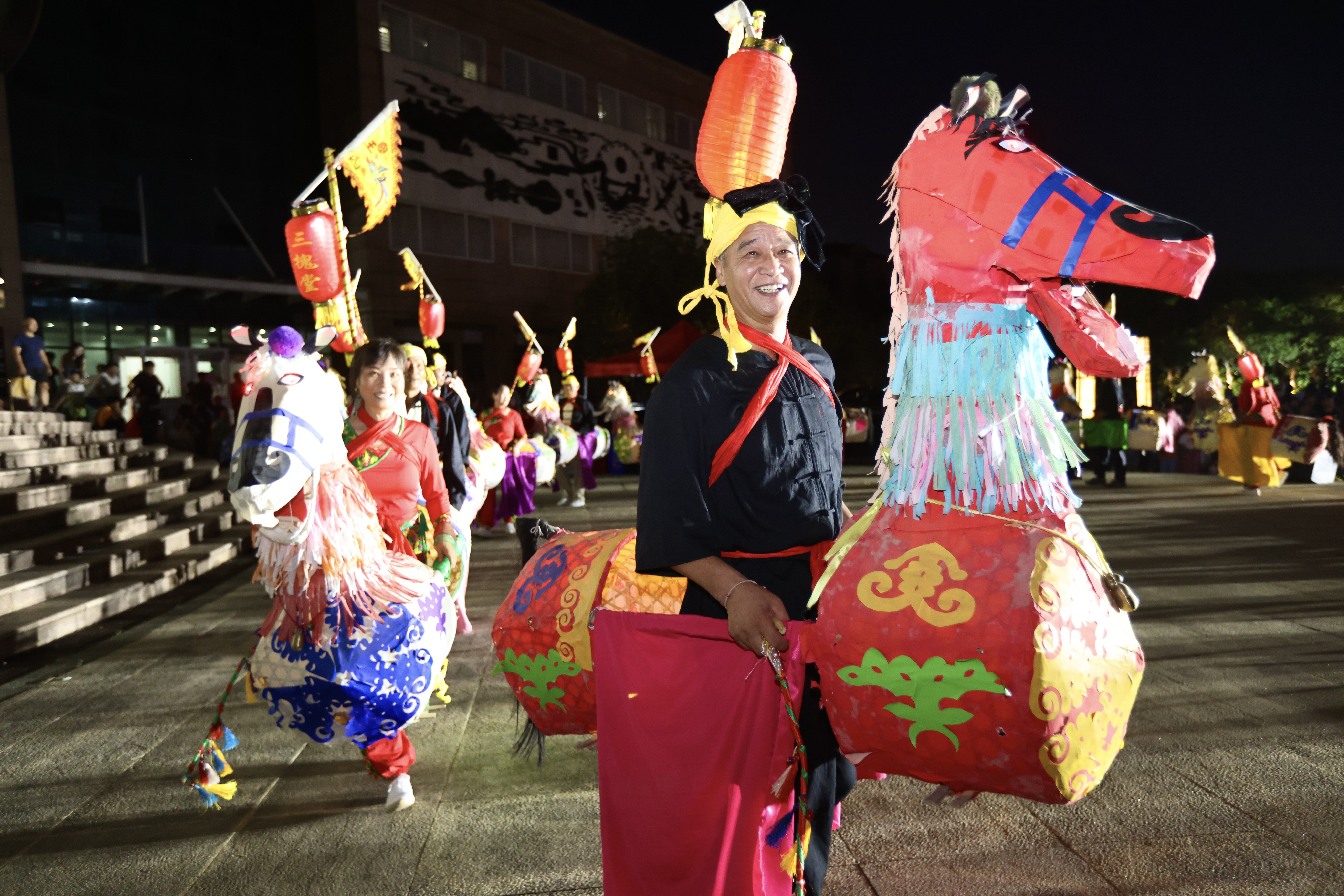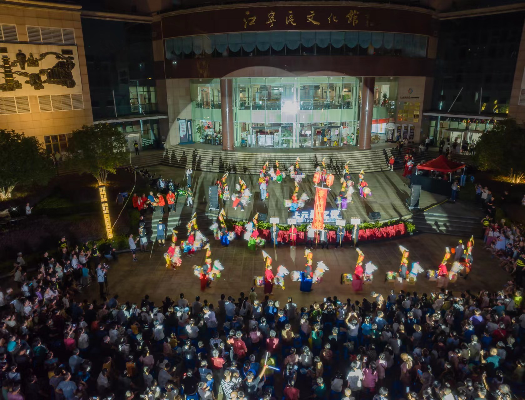 19点30分,中心户外主舞台瞬间闪亮,马铃阵阵,响亮清脆;群“马”欢腾,一片盛装……伴着喧闹的锣鼓和接地气的唱词,江宁区秣陵街道凤凰村村民带来的非遗民俗表演章山王马灯火热上演,队员们身着五彩华服,左手拎马头,右手握马鞭,不断变换着队形和步法,把现场气氛推向高潮。“章山王马灯是本地流传了300多年的民间风俗,逢年过节大家总是很期待我们来跑马灯。”队员王克飞自豪地告诉记者,大伙儿非常乐意作为志愿者参加新时代文明实践活动,把非遗传统文化传播得更广更远。