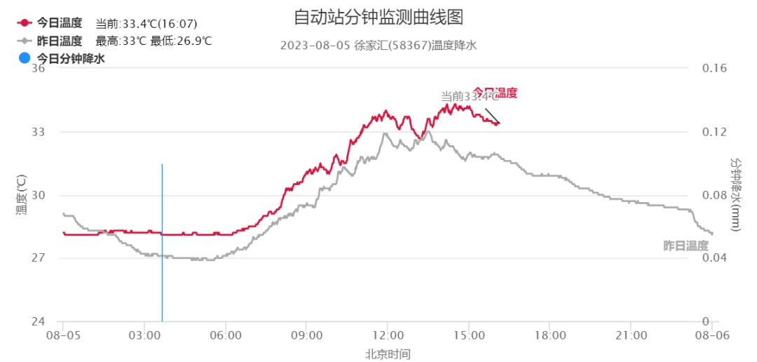 申城今天继续蓝天白云的天气,受台风外围云系影响,浦东、宝山、奉贤等地部分地区出现了分散性的短时阵雨,雨量微弱,且时间较短。气温较昨天略高,最高气温普遍来到了33-34℃,其中市区徐家汇站34.3℃,闵行站最高,达到了35.2℃,体感炎热。