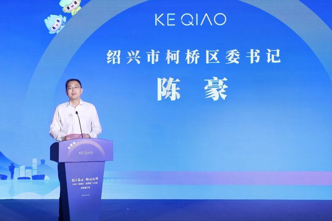推介会上,柯桥区委书记陈豪代表区委、区政府致辞,他说柯桥与上海地缘相近、人缘相亲、文脉同源。近年来,随着“融杭接沪”发展战略的深入推进,柯桥与上海开展了一系列全方位、深层次的交流合作,取得了很好的成果,在杭州第19届亚运会来临之际,柯桥诚挚邀请各界朋友来实地考察、观光旅游、投资兴业。