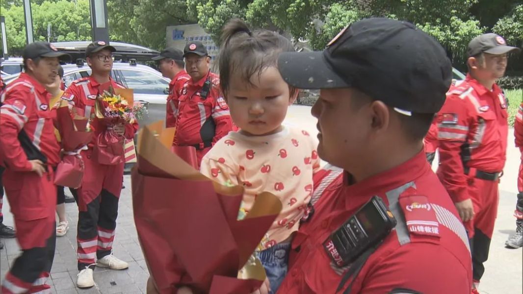 见到家人,归来的铮铮硬汉也忍不住留下了激动的泪水。上海山锋应急救援队队员乔继光抱着还不到2岁的孩子说道:“5天了,我变黑了,孩子看到我有点陌生。在涿州抽空给老婆发消息,发不出去,很晚的时候回到营地才有点信号,才能看到小孩照片,看到他们视频。”