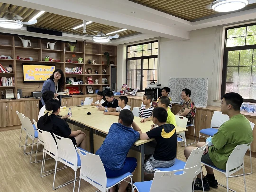 俞辰盈着重向小朋友们介绍了现在市面上流通的第五套人民币的种类、特征。“中国名片”背后深厚的人文历史底蕴和民族文化精髓浓缩了国家自信与文化自信。现场小朋友们听得津津有味,被钱币上博大精深的文化深深吸引。