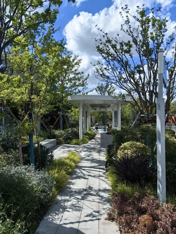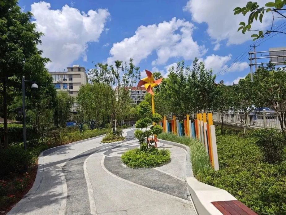 泾羽园的更新设计,实现了整体结构、功能相对完善的“园”的重塑,让原本平平无奇的绿地具备了完整的“园”的结构,从传统绿地转为当代“口袋公园”,更好地融入水环绿色空间。园内的林下步道作为一个连续的空间组织元素,能够将各种不同的场地体验和活动联系起来,包括特色休闲廊架节点、休憩主题花园,将自然生态带入生活,提升市民的满意度、感受度和获得感。