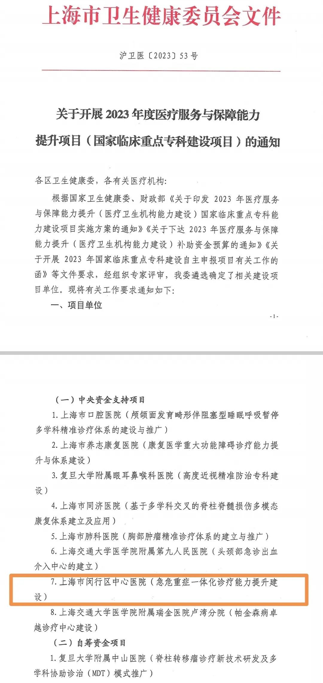 近日,上海市闵行区中心医院(以下简称闵中心)“急危重症一体化诊疗能力提升建设项目”获批成为国家临床重点专科建设项目。这也是闵行区属医院中首个跻身“国家队”的临床重点专科。