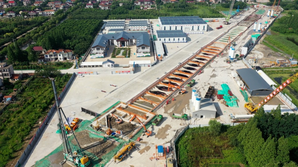 明挖段基坑在进场之前由9个鱼塘构成,自2022年10月进场至今,为确保顺利施工,沪杭铁路客运专线股份有限公司不断优化施工组织,克服各类因素影响,组织开展多班组、多作业面平行流水生产,完成了计划的施工目标。明挖段基坑预计今年11月完成主体结构施工,2024年4月盾构始发。