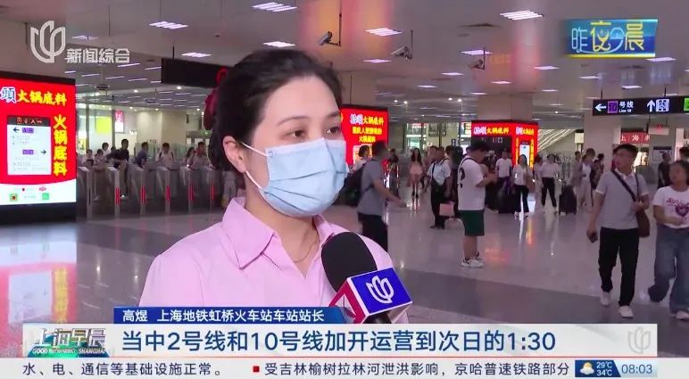 上海地铁虹桥火车站车站站长 高煜:我们上海地铁的2号线、10号线、17号线也分别地加开了列车,当中2号线和10号线加开运营到次日的1:30,17号线加开运营到次日的00:30。