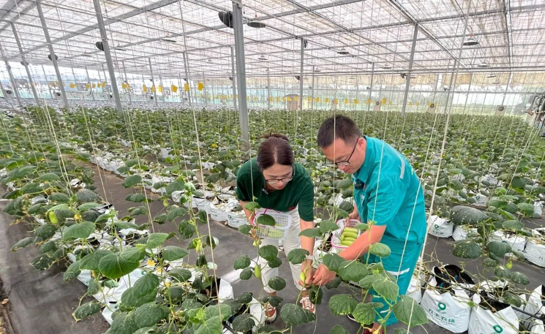 看起来像个黄瓜宝宝,但这个品种就长这个大小,口感最好。”记者没忍住,摘了一个尝了尝,皮很薄,汁水充沛,又脆又嫩,黄瓜清香味充满了口腔。