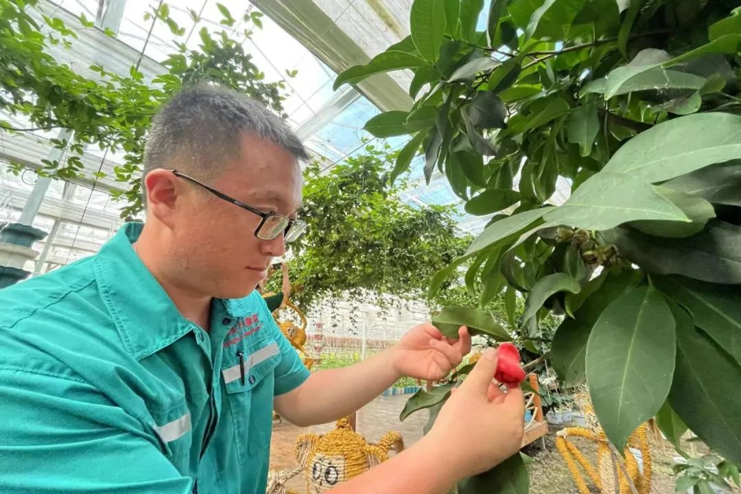 赵永祥在照顾温室里种植的莲雾