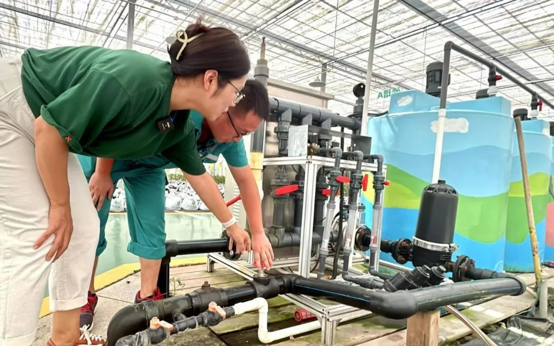 说话间,赵师傅带着记者一起打开了水肥一体化设备阀门,水加上已经配比好的营养液,通过地下管网和喷滴灌设备输送到植物的根部。“35亩地的浇水施肥,人工的话几天都干不完,现在只需要打开开关就行了。”