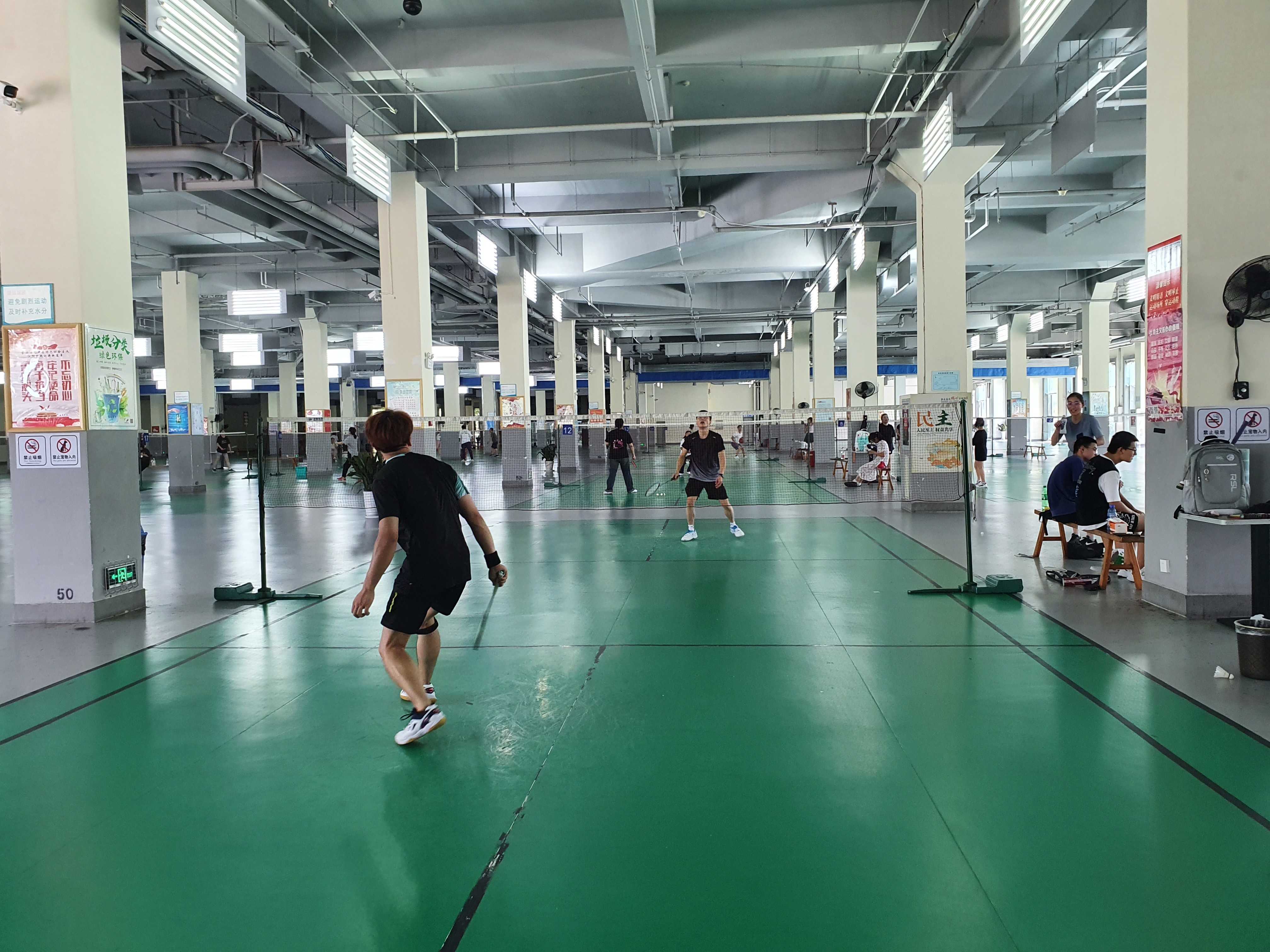 8月6日下午,淮安市淮阴区体育健身中心体育馆羽毛球场,不少年轻人在此挥拍对弈。“我家就住附近,这边停车也很方便,周一到周六的低收费时段,我们打球一个人一次只需花费12元,周日和其他节假日这里全天免费,非常实惠。”市民蒋悦告诉记者。