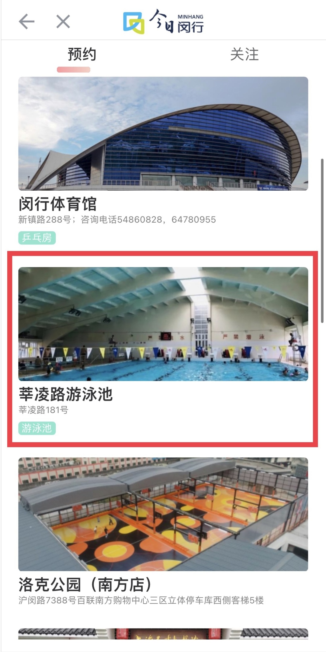 3.下拉列表找到“莘凌路游泳池”