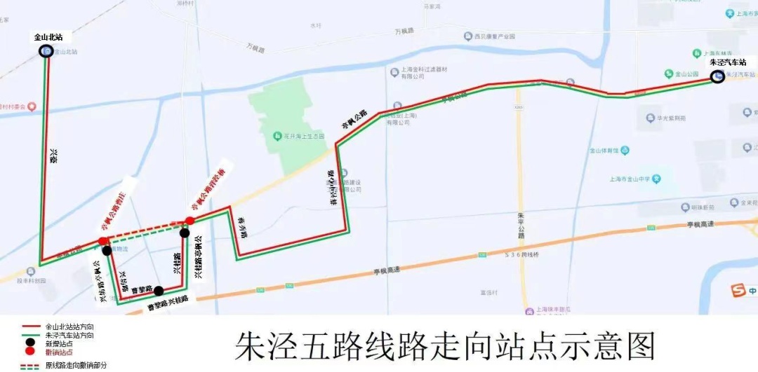 ◀朱泾5路整后走向▶