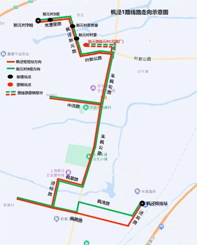 ◀枫泾1路调整后走向▶