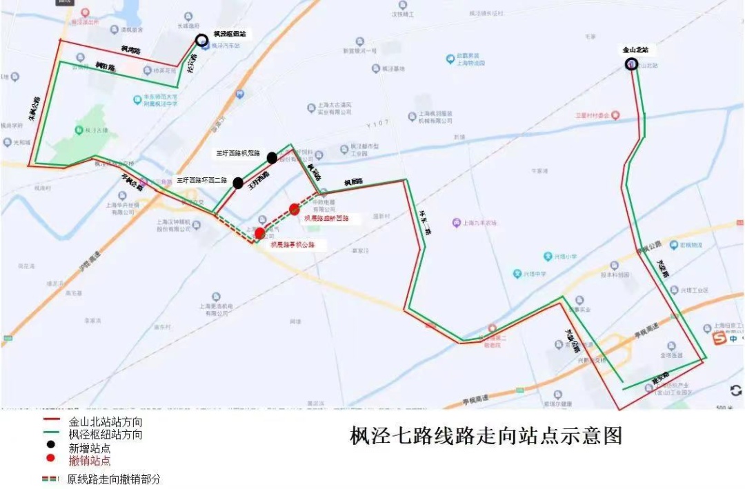 ◀枫泾7路调整后走向▶
