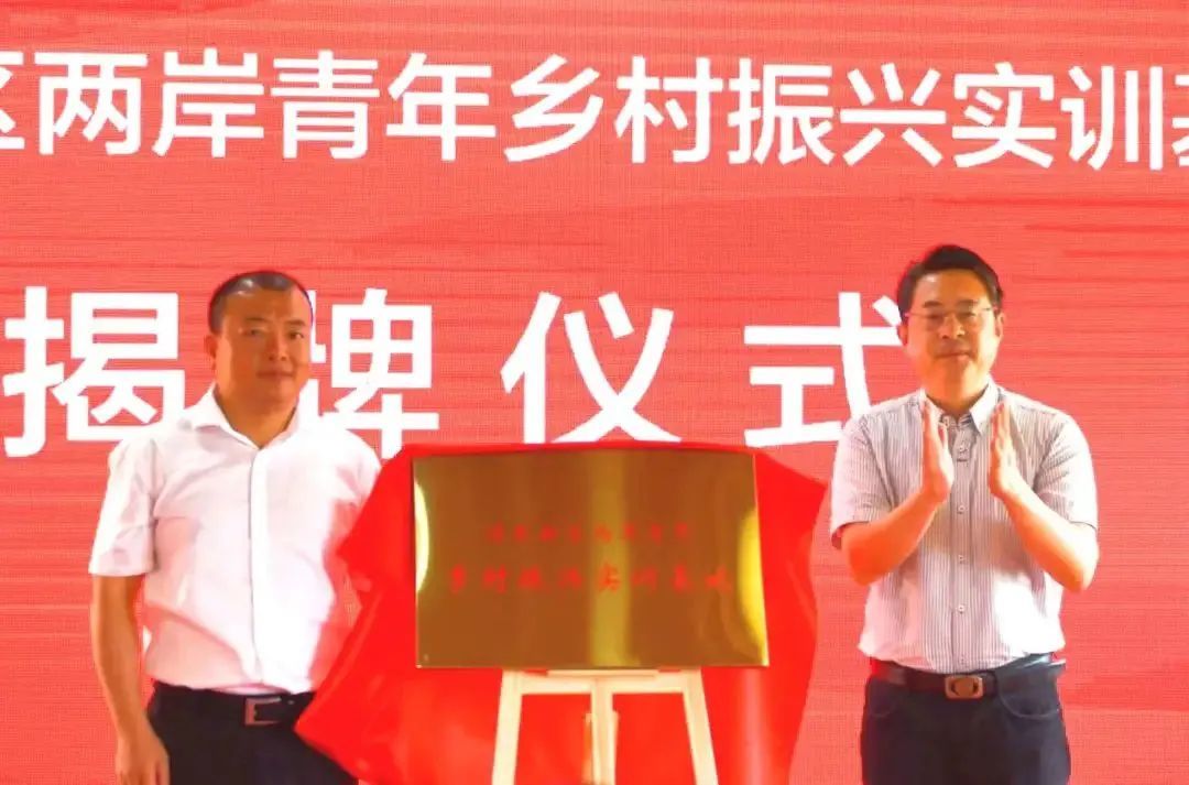 浦东新区台办龚云卿处长、上海乡育农业科技有限公司创始人蒋卫兵为“浦东新区两岸青年乡村振兴实训基地”揭牌。