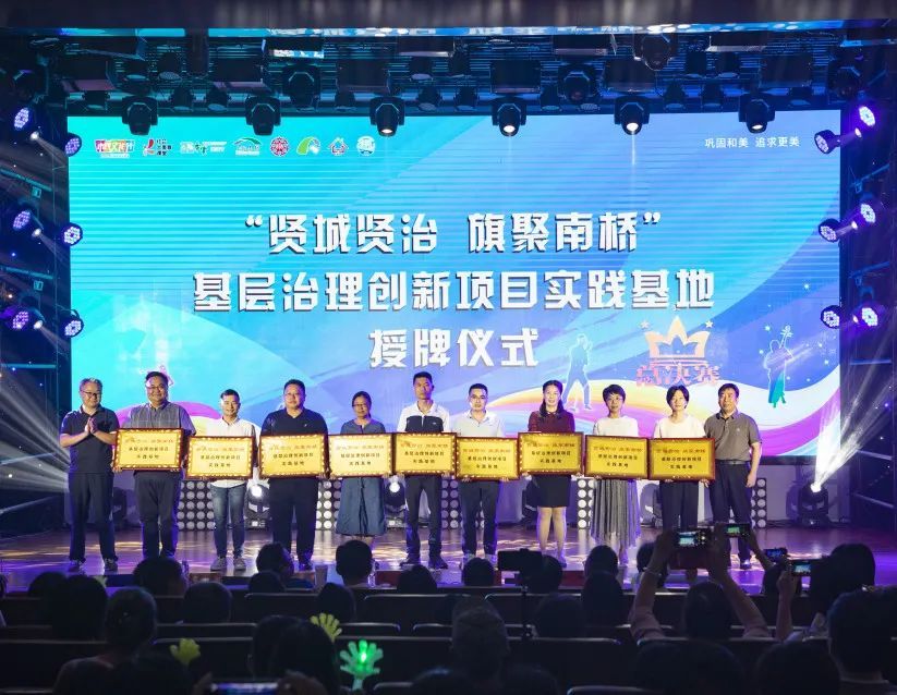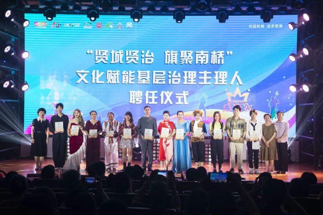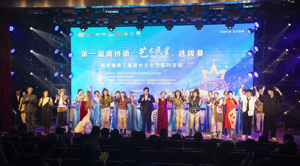 决赛正式开始! 马上为您奉上 12组选手们的精彩演出 看看哪一组才是您的最爱呢? 一号选手朱子天 舞蹈《这世界有那么多人》 二号选手施蕾、叶世伟 歌曲《领航》 三号选手夏春花 歌曲《想你·365天》 四号选手姚士龙 葫芦丝曲目《竹林深处》 五号选手南戏辣妈 歌舞短剧《路灯下的小姑娘》 六号选手李卫良 歌曲《松花江上》 七号选手程志英 戏曲联唱《唱支山歌给党听》 八号选手南桥之声合唱团 歌曲《渔光曲》 九号选手蒋琴花 京剧智取威虎山选段《打虎上山》 十号选手南有乔木乐队 原创歌曲《别管答案》 十一号选手金一 说唱歌曲《麒麟》 十二号选手成皓 舞蹈《我的青春》 专业评审梁彬为大家带来一曲《忆江南》,收获观众们的阵阵掌声。 此次的评委阵容也相当豪华:上海电视台主任播音员黄浩,上海歌舞团男高音歌唱家、国家二级演员梁彬,上海九棵树爱乐乐团打击乐副首席陈易,上海音乐家协会合唱专业委会员理事王也弟,上海音乐家协会会员、奉贤区图书馆副书记副馆长浦飒5位组成专业评审,和50位大众评审共同为选手们打分。 经过激烈的角逐和紧张的投票环节 最终南桥镇第一届艺术民星选拔赛 冠军由【南戏辣妈】斩获! 活动当天 还进行了授牌、颁奖等仪式 一起来看看吧~ 基层治理创新项目实践基地授牌仪式 南桥镇持续“破旧立新”之势,不断为基层社会治理开拓新思路,注入新内涵,通过群智群力打造了一系列的善治项目,让基层治理的“神经末梢”更敏锐,让人民群众更幸福。杨王村平安村企联盟、华严村橘米公社、六墩村聚秀堂、光明村七色堇公益市集、阳光社区益星熠熠睦邻商圈、旺悦社区悦聚荟公益同行、正阳二居睦邻花园、银河居委三坊六阁、江海一居1+1邻里达人社等9个项目作为“善治样本”,让这些经验可跟可学可借鉴。 解码南桥 “善治路径” 基层治理精品路线手绘地图正式发布 南桥镇将自然、人文等要素空间重构,打造土地、经济、美学等多层面的价值定位,以“人文资源+地理信息”的方式,汇成5条精品路线,展示城乡发展脉搏、社会治理新意、民生服务温度。这张地图蕴含着每一名基层工作者的心血和付出,记录着与居民之间的情感交流,体现着对社区发展的无限热爱。每一条线路背后都有无数的故事,每一个标记都代表着一个成功实践。 “艺术民星”网络人气奖颁奖 这次的“艺术民星”选拔赛,也汇聚起社区的贤人、能人、达人,引导他们发挥文化带头人和骨干力量的示范引领作用,让文化软实力成为推动南桥镇基层社会治理现代化建设的重要“引擎”。 文化赋能基层治理主理人聘任仪式 文化赋能基层治理主理人将通过自身的影响力和号召力,带动更多的社区居民参与到基层治理,助力社区治理的改善和提升,将与社区居民密切互动,倾听他们的声音,传递他们的需求,推动治理工作更加贴近居民、服务居民。 最后所有决赛选手上台 带来大合唱《我们的未来不是梦》 全场在热烈的气氛中接近尾声 本次活动不是追逐梦想的终点 而是展翅翱翔的起点 让我们共同期待下一次的精彩!
