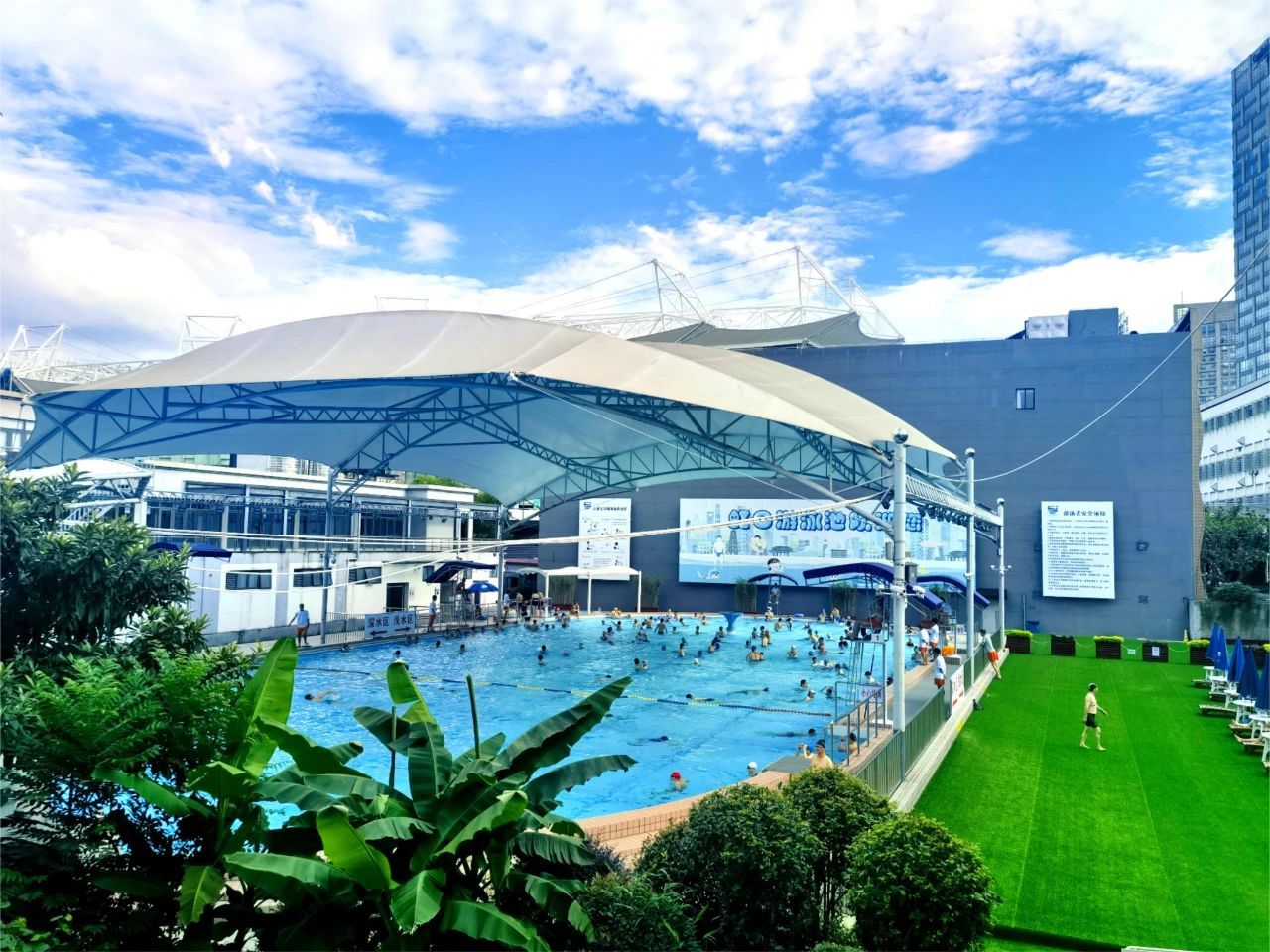 今年夏天,建于1922年的百年泳池——虹口游泳池再次限时开放。今天恰逢我国第15个“全民健身日”,虹口游泳池免费开放。