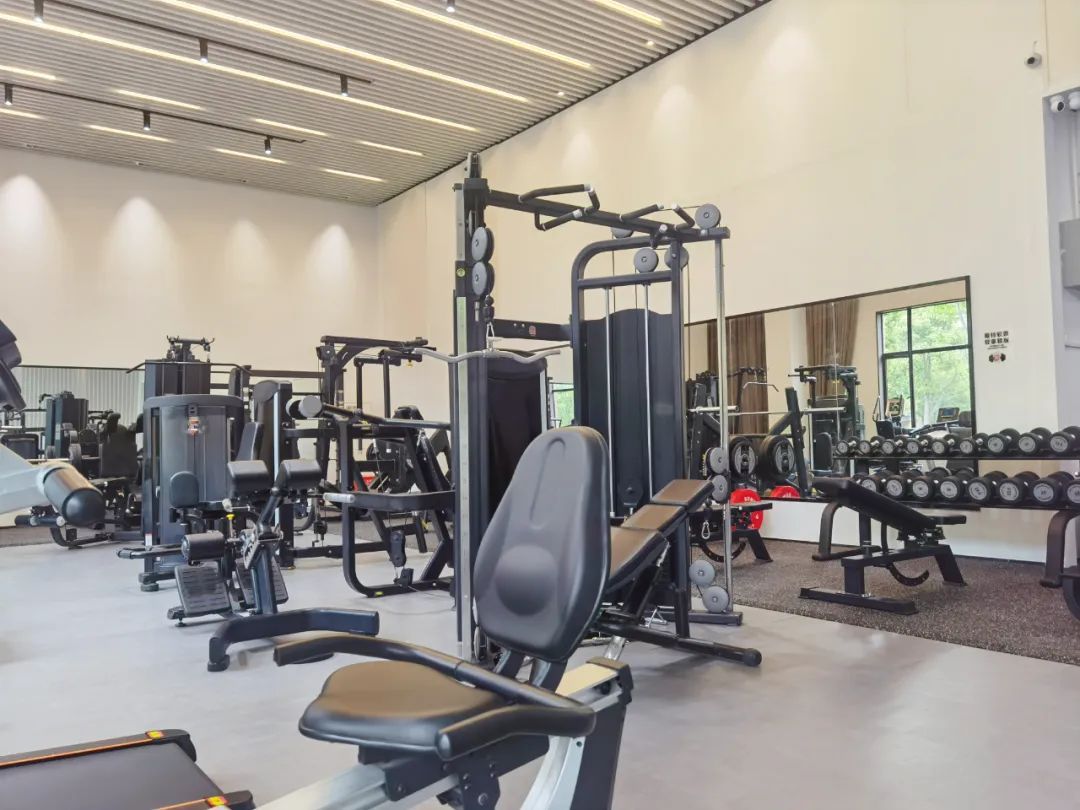 健身车、跑步机、椭圆机,应有尽有。坐姿推胸机、坐姿下拉器械、腿屈伸、牧师椅、推肩器、龙门架,各种器材任你选择。
