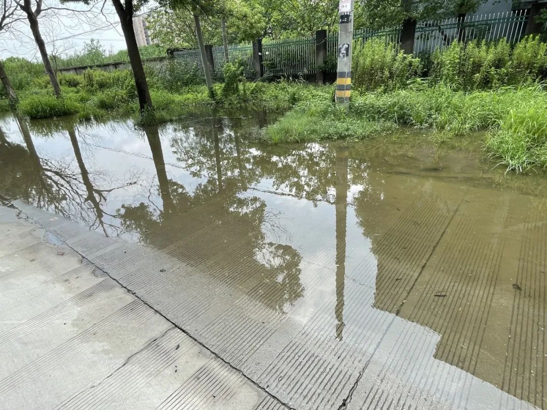 车墩市政公司接到反映后迅速前往实地查勘。此段道路属于老旧路段,目前暂无地下管网,只有道路两端有两个与其他新建道路相连的排水井,加上道路西侧绿地地势不平,如遇强降雨时,就会出现排水不畅的情况,从而导致积水问题。