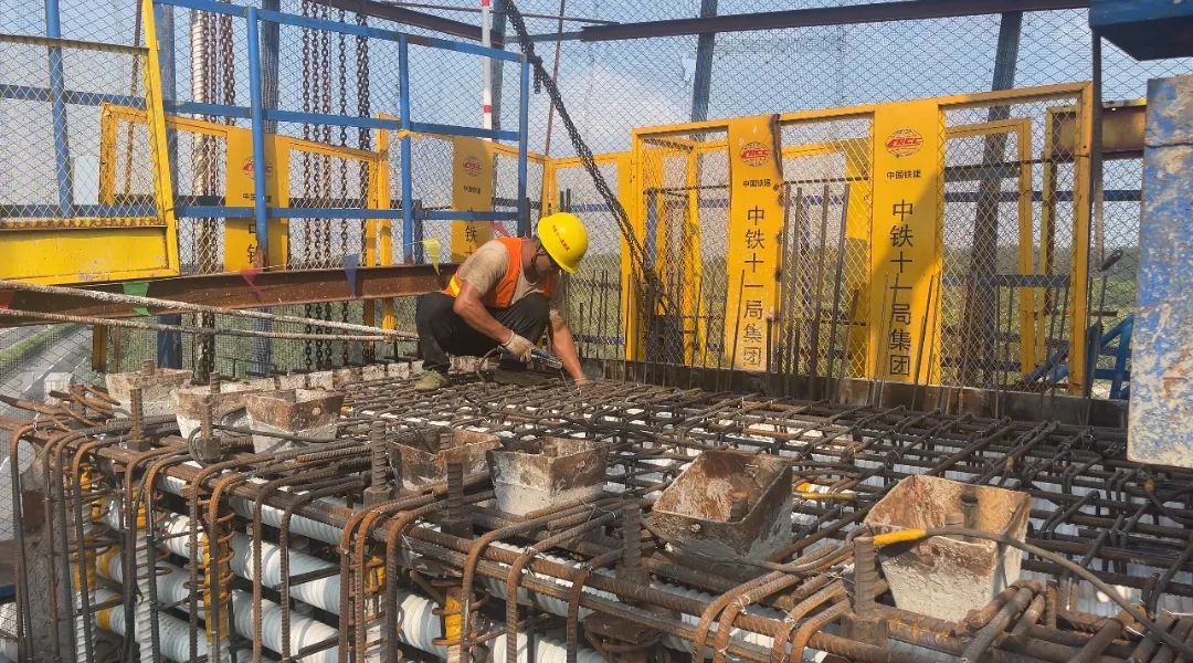 “现在高温天气,工人们比较辛苦,但还是一直在克服困难,做好模板、钢筋安装、混凝土浇筑的工作,确保我们跨G50节点桥的合龙顺利完成。”中铁十一局上海轨道交通17号线西延伸项目副总工刘延涛说。