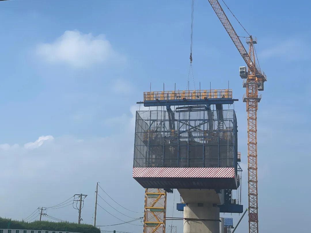 跨G50沪渝高速施工是一大亮点。高速上车辆往来繁忙,两座主墩分离高速路两侧,都已经进入了梁部施工阶段,正按照工期稳步推进,整个跨G50沪渝高速节点桥工程将不会影响高速公路通行。