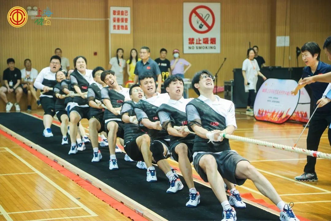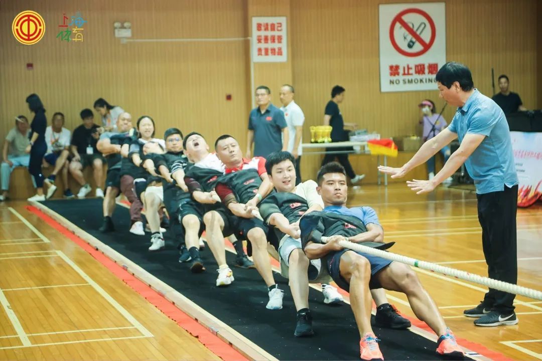 8月8日下午,2023年上海市体育局系统职工拔河比赛在上海市体育宫举行。来自市体育局系统13家单位的职工群众代表,组成12支队伍共150余人参赛。