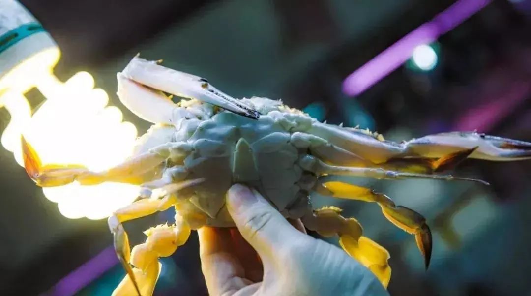 而瘦弱的蟹,肚皮白中微微带青蓝色