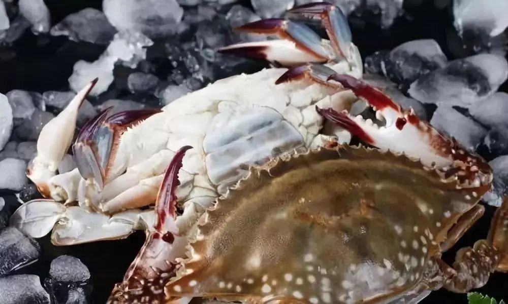 一只肥满的梭子蟹,肚皮白中略微带黄
