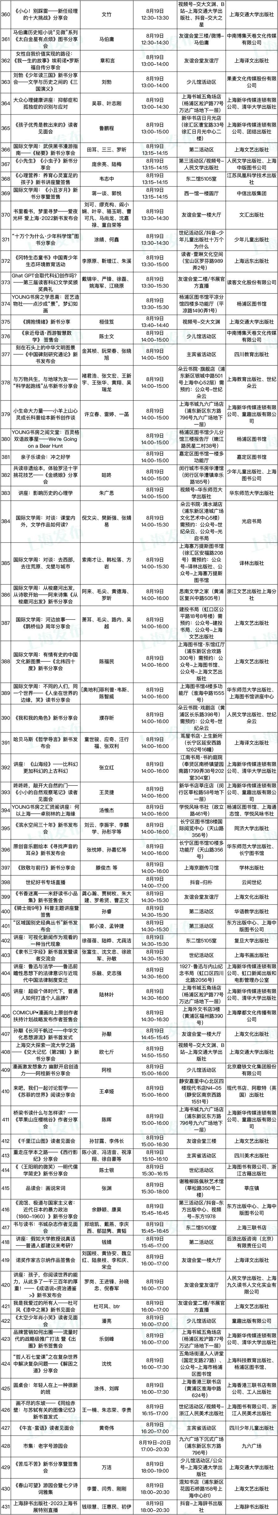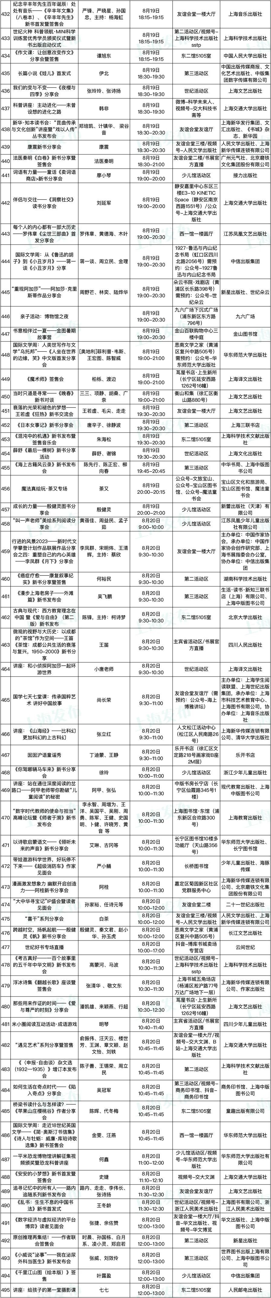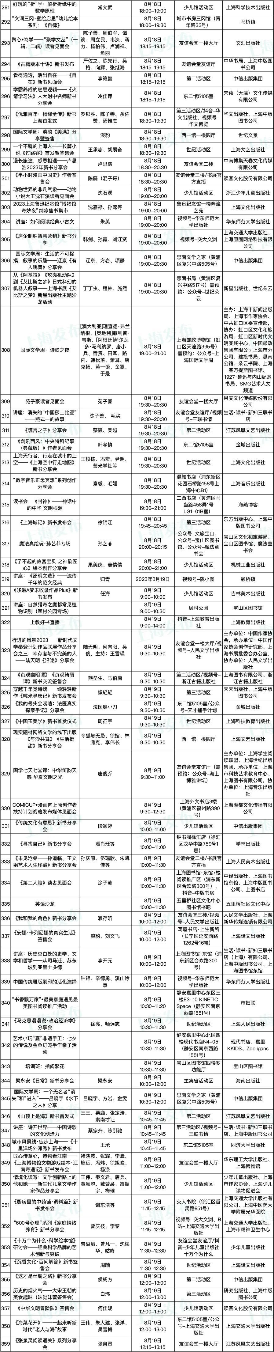 2023上海书展活动表