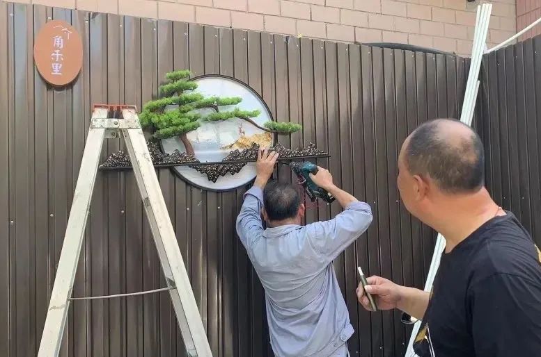烈日炎炎下,大家热情洋溢,一起动手装饰美化南二门的入口处。夏日微风中,莲花盆中的莲叶轻轻摇曳,电表箱上的国风莲花清新雅致,引来不少居民围观称赞。
