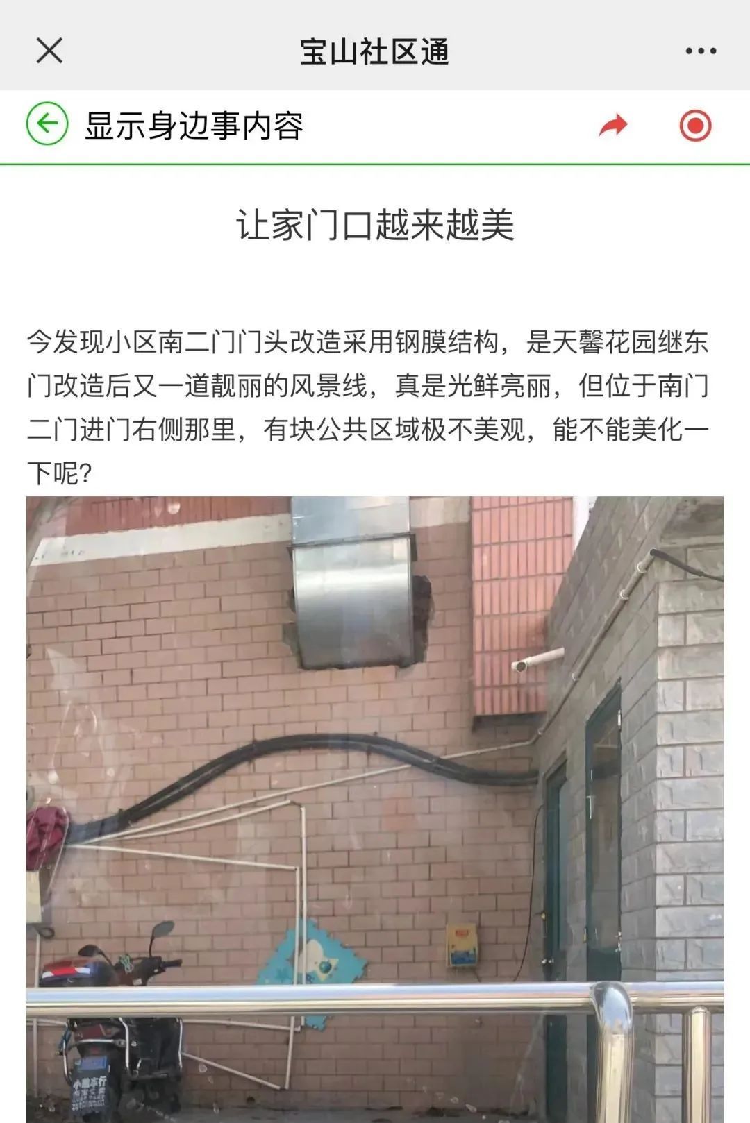 社区基层监督小组主动跨前,广泛收集社情民意,切实解决民生问题。廉情监督员在收到问题提醒后第一时间反馈给社区党总支,“三驾马车”通过走访了解到现场墙壁线路裸露、电表箱外观老旧等情况,随后共同讨论对南二门处进行美化改造。