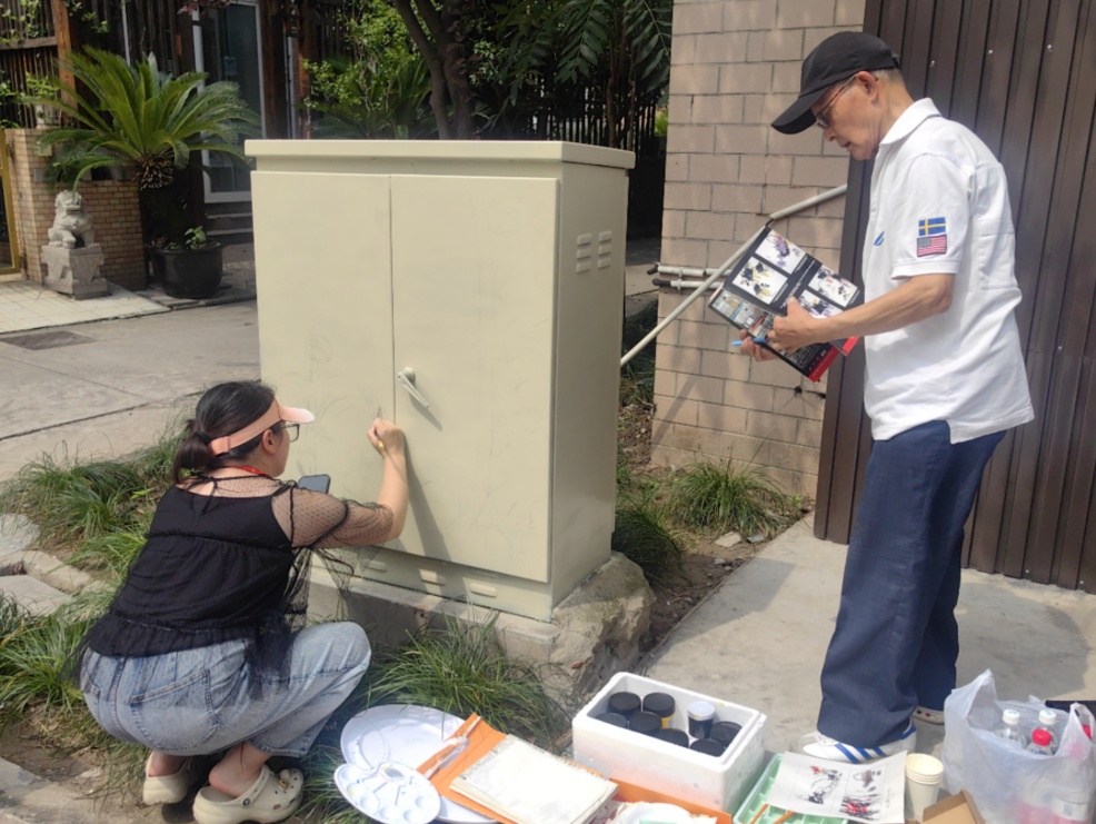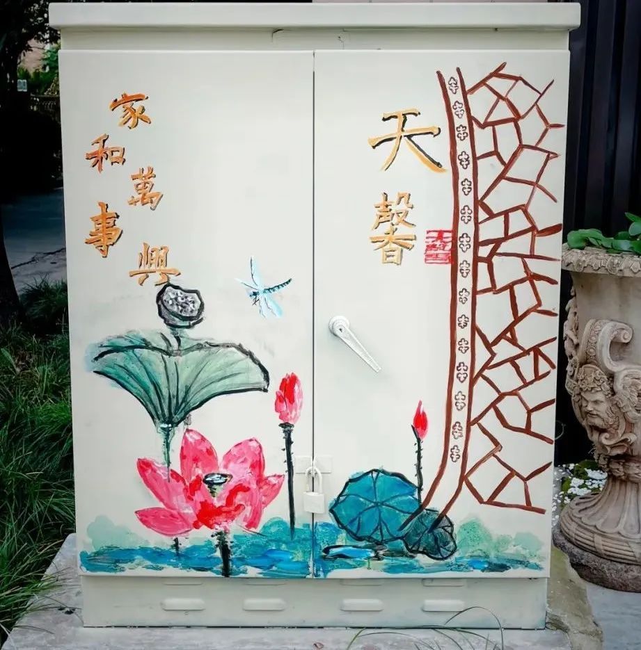 “小区门口的角落变得这么好看,电表箱上的国风荷花画得也很雅致。”居民李女士带着女儿路过社区门口时,忍不住驻足拍照。