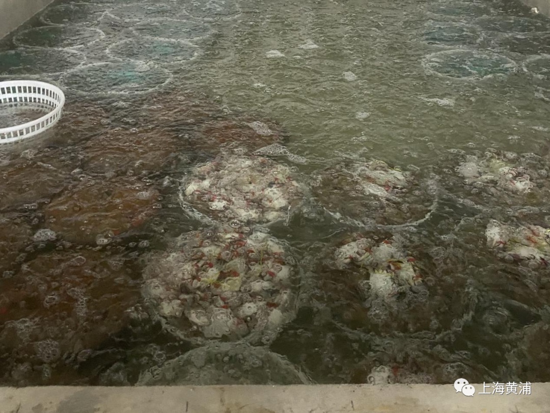 就在距离海边不远的地方,梭子蟹们已经毫无时差地“住”进了叮咚买菜的产地仓。暂养池里,一筐筐规格分别在100克、200克左右的,活力十足的梭子蟹在原生海水和充足的氧气里吐着泡泡,它们腹白饱满,蟹腿硬实。