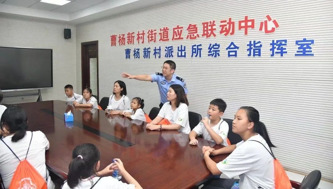 第二站,为增强小朋友的安全防范意识,让优抚对象家庭和退役军人家庭的家长和孩子近距离的感受公安工作和警营文化生活。曹杨新村街道双拥办工作人员带领大家来到曹杨新村街道派出所,曹杨新村街道派出所连续14年被评为公安部一级派出所,荣获多个荣誉称号,并连续6年实现地区群众“安全感、满意度”“双提升”。当日,正值是派出所开展警营开放日活动,大家在警官的带领下,先后参观了派出所综合指挥室、警用装备室、健身室等场所,了解了警察的日常工作生活情况。另外,警官还为亲子家庭做防诈骗主题的知识宣讲,用生动活泼的语言和案例分享了许多防诈骗的小知识,大家纷纷表示,要把防诈知识应用到以后的生活中。