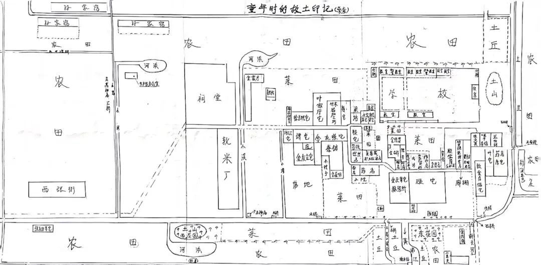 “各种小店不少,食品烟杂店、五金百货店、中西药店、粮店,还有小修小补的缝纫铺,零零杂杂,将近20家店铺……店铺间往往夹着两三户居民,大概有几十户,倒也为小镇平添了几分生活气息。”