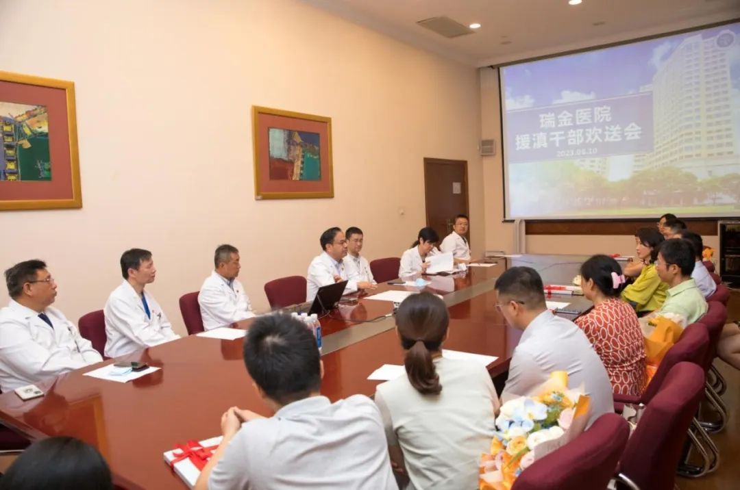 8月10日,瑞金医院举办援滇干部欢送会,瑞金医院普外科(派驻无锡分院副院长)邓漾、呼吸与危重症医学科倪磊、消化内科周春华、心脏内科朱天奇、心脏内科罗庆志5位医生作为上海市“组团式”援滇医疗人才,将于今日启程前往墨江哈尼族自治县人民医院,开展为期三年(医院管理)、一年半(医疗)的援建任务。瑞金医院党委书记瞿介明,党委副书记、纪委书记俞立巍,副院长陈尔真,以及相关临床科室、职能部门负责人参会。
