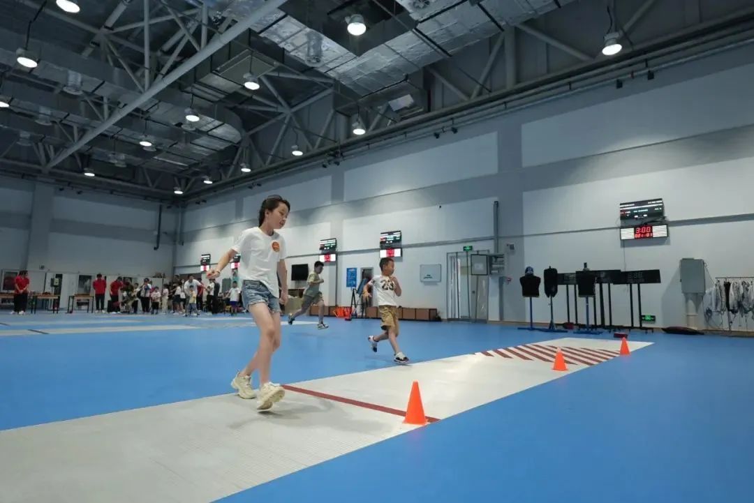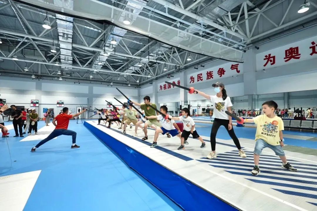 正值夏训期间,运动健儿们在训练场上挥洒汗水、奋力拼搏,市民代表们来到重竞技馆沉浸式感受运动队的风采。重竞技馆是一座占地3500平方米的大型综合训练场馆,融合了现代五项及击剑、跆拳道、拳击、武术、柔道六个项目。全运会冠军、上海男子佩剑主教练陈昊聪,全运会冠军、上海男子佩剑副教练刘星宇与市民代表们交流互动。两位明星教练为大家展示了明星墙,并生动讲解、演示了不同类型击剑比赛的规则。在积累了一定的击剑小知识后,现场的小朋友们都迫不及待地穿上击剑服,戴上头盔,跟随专业运动员们的动作指导,学得有模有样。
